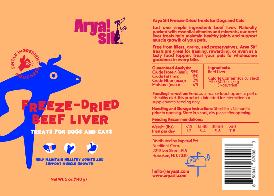 Arya Sit! an all-natural freeze-dried treat for dogs and cats is made with a single ingredient - real beef liver. Our freeze-dried beef liver is rich in vitamins and minerals that support your pet's daily nutritional needs. Contains no artificial flavors, sweeteners, grains, or preservatives, you can feel confident knowing that your pet is getting a healthy, nutritious snack.